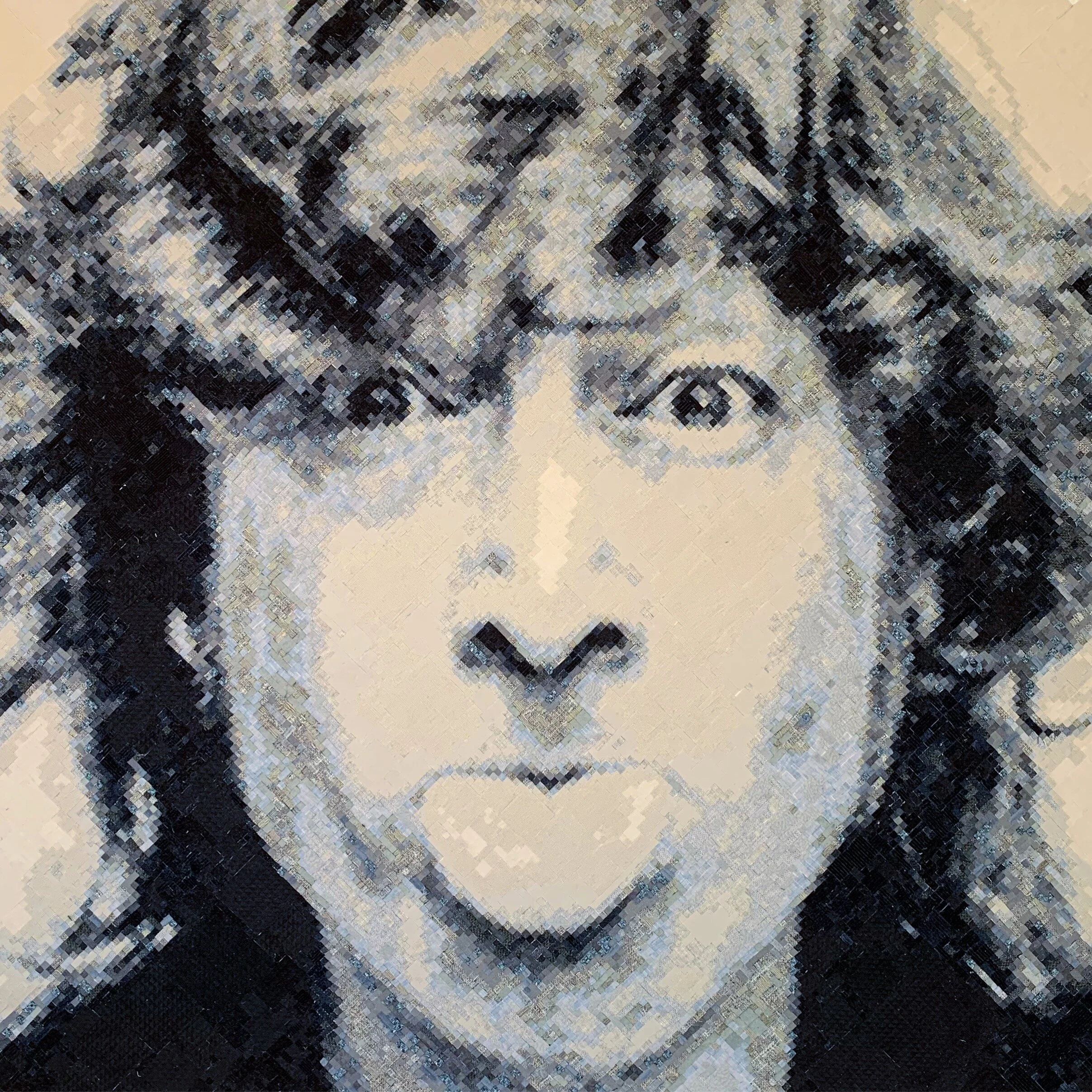 Sian Medill - LENNON. Textile on Canvas. 100cm x 100cm.